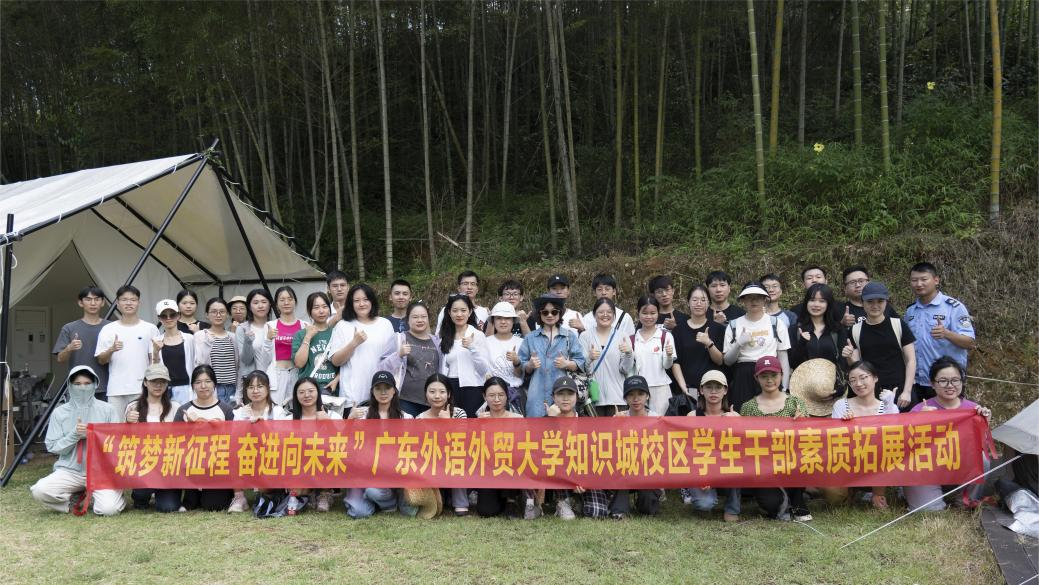 为了提高知识城校区学生干部综合素质,培养学生组织的凝聚力、引领力、组织力、服务力,促进各学生组织间的相互交流,营造积极向上的研究院氛围,9月23日至24日,广外黄埔研究院在广州市从化区溪头村竹溪涧露营地开展知识城校区学生干部素质拓展活动。本次活动为期2天,来自2个学院近50名同学汇聚一堂开启一趟破冰之旅。