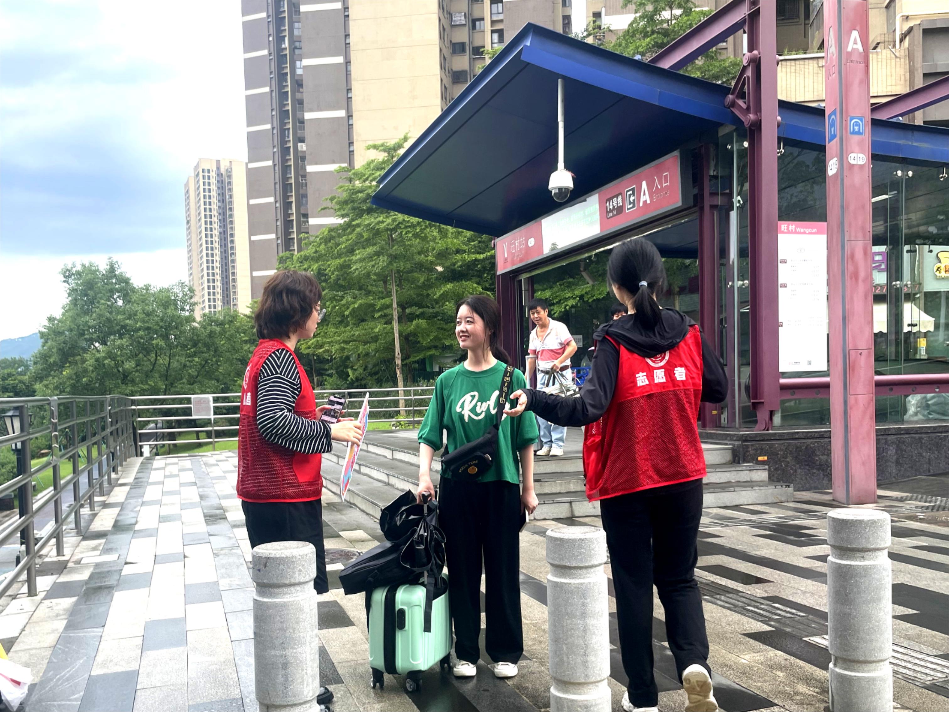 另一边,在旺村地铁站口,志愿者们也提前搭好帐篷、摆放好标识,确保为新生前往园区报到做好指引工作。一切准备就绪,让我们热烈欢迎新同学的到来!