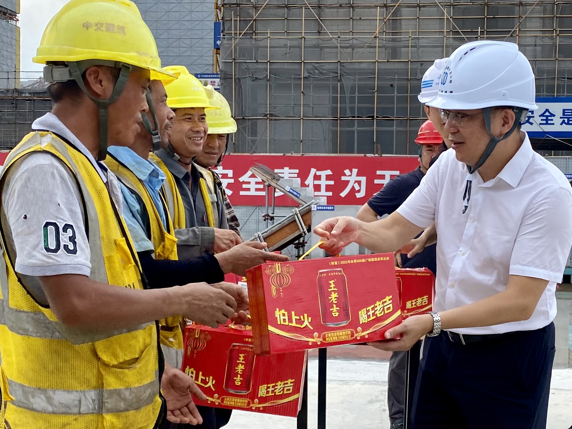8月14日上午,我校党委常委、副校长、黄埔研究院院长刘海春率队来到知识城新校区建设工地现场,看望和慰问在高温下辛勤工作的一线员工,为他们送去防暑降温饮品。黄埔研究院、知识城校区管委会(筹)办公室、基础建设部等部门负责人参加慰问活动,通过暑期加快推进新校区建设,力求实现新校区建设的高质量发展。