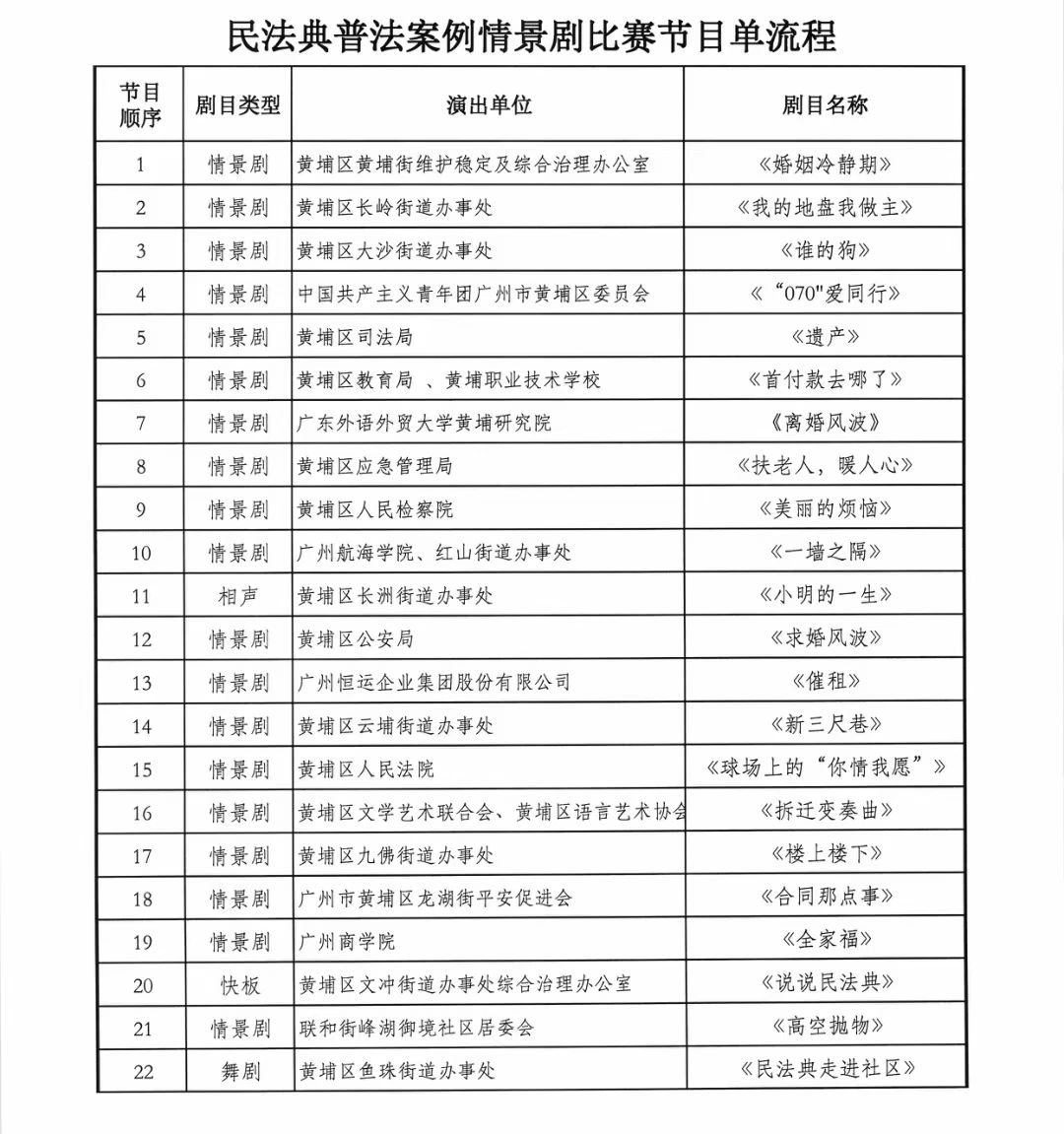 3月19日下午,由黄埔区委政法委主办的“民法典经典案例情景剧比赛”在黄埔区丰乐少年宫拉开序幕。全区22家单位进入了决赛,最终我校法学院研究生选送情景剧《离婚风波》荣获“黄埔区民法典普法案例情景剧比赛”优秀奖。