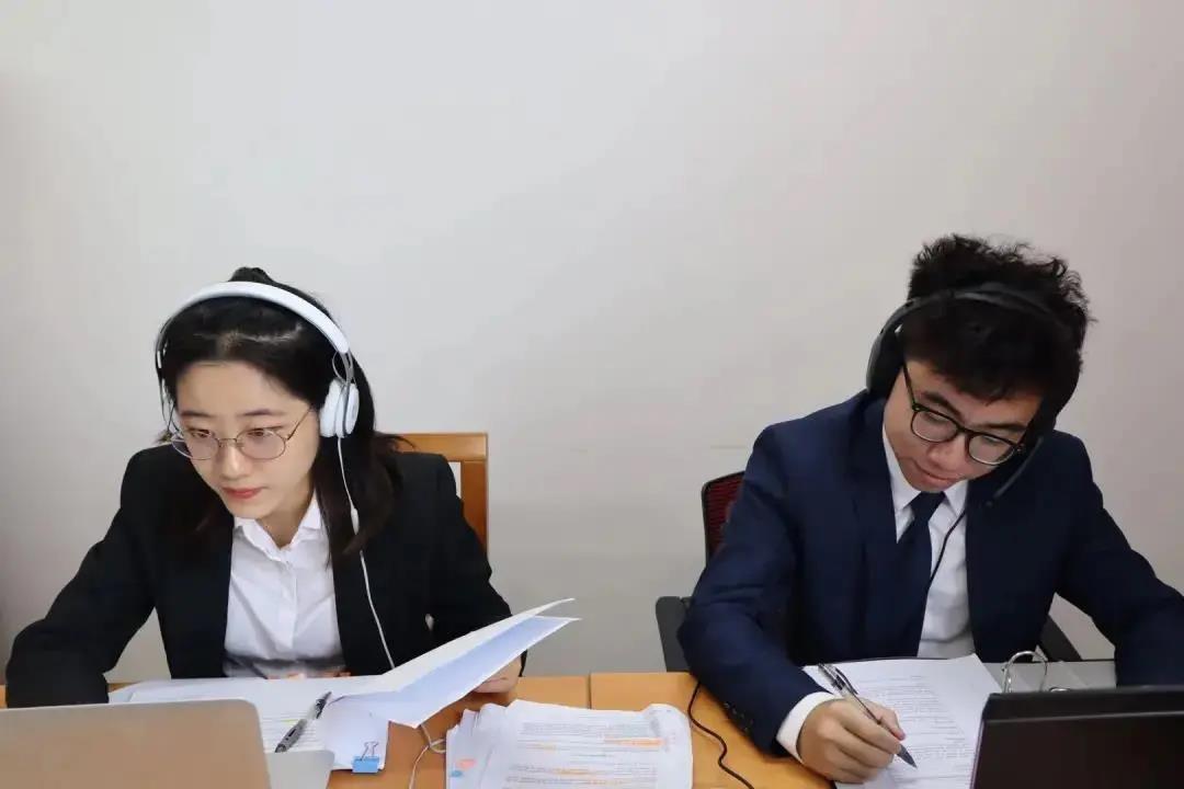 (庭辩员付昱禎、赵汝航对阵德国杜塞尔多夫大学选手比赛图)