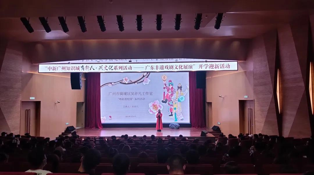 3月6日下午,“中新广州知识城育新人、兴文化系列活动——广东非遗戏剧文化展演”在知识城国际科技中心会议厅举行。本次活动在中新广州知识城开发建设办公室指导下,由知识城校企创新创业联合会主办、知识城合资公司协办、黄埔区吴非凡工作室承办。我校师生共赴现场体验视听盛宴。参与本次活动的还有西安电子科技大学广州研究院、广州大学黄埔研究院、广州商学院师生。