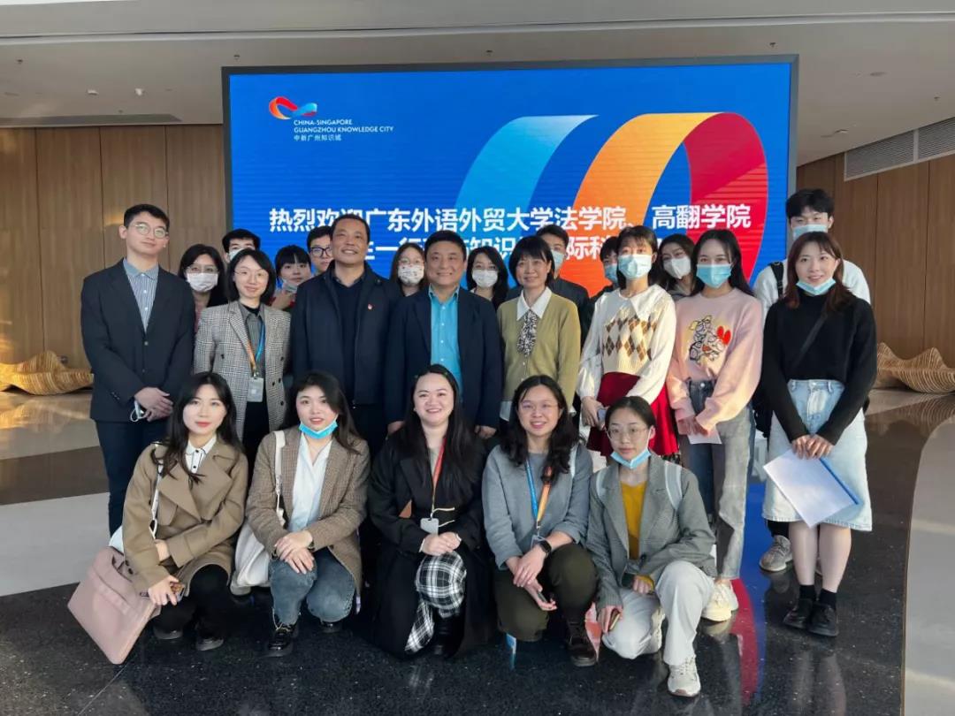 为充分发挥实践环节在研究生人才培养过程中的重要作用,近距离感受企业的文化和工作氛围。1月7日下午,法学院、高级翻译学院师生代表走进知识城合资公司开展移动课堂活动。中新广州知识城投资开发有限公司(下简称“知识城合资公司”)产业促进部总经理王楠、产业促进部总监袁梦琦、人力资源部高级经理邱尚冰,我校法学院党委副书记刘军、高级翻译学院党委副书记李海琳、辅导员王晨、陈珂出席了本次活动。