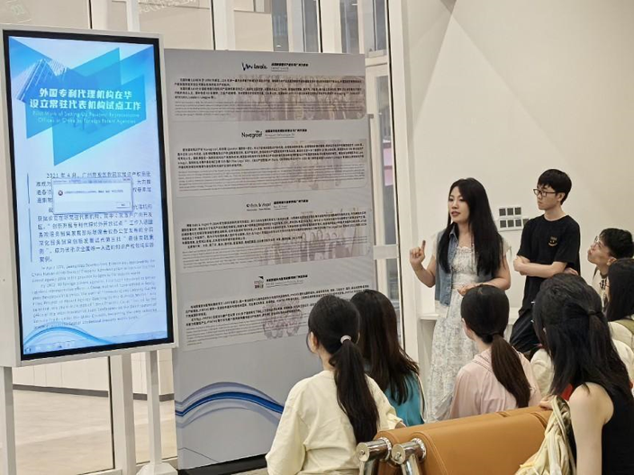 促进会吴丽璇秘书长向高级翻译学院师生介绍了中新广州知识城国际知识产权服务大厅的主要服务内容,包括提供国际知识产权信息查询、国际知识产权事务咨询、国际知识产权申请代理、国际知识产权服务交流以及国际知识产权服务资源展示等多元化的服务。这些服务能够帮助企业在“走出去”的过程中,更好地进行知识产权的保护和运用,降低海外知识产权成本,改善营商环境、优化海外投资策略以及加强风险预警等关键问题,为企业国际化发展保驾护航。