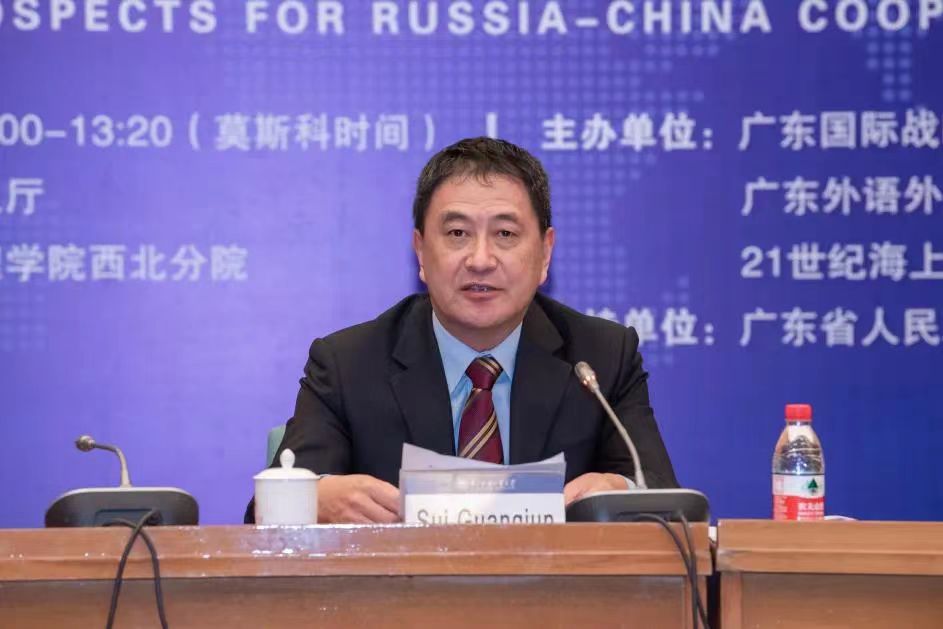 广东国际战略研究院院长、广东省优秀社会科学家隋广军教授在致辞中指出,中俄应以共同体意识为价值引领,秉持共商共建共享的治理观,深化在联合国的合作,加强“一带一路”和欧亚经济联盟建设对接,对冲逆全球化问题。要积极落实中俄《关于2030年前中俄经济合作重点方向发展规划》,推进双方在贸易规模扩大和贸易结构优化、本币结算、能源和气候变化等领域的务实合作,为实现全球发展和安全的共同愿景提供切实支持。