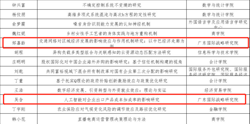 学术资讯 | 广东国际战略研究院邹嘉龄、吴含两位老师获国家自然科学青年项目立项