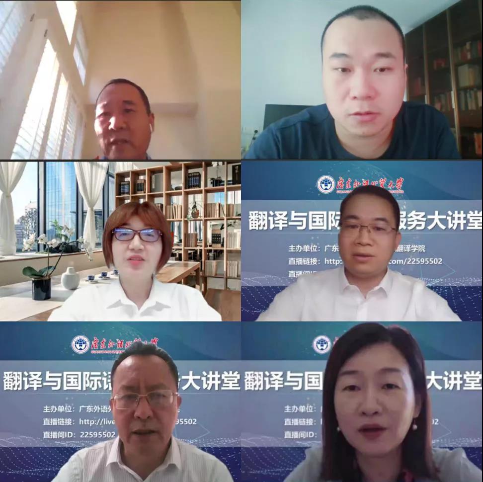 2021年6月5日,我校高级翻译学院通过腾讯会议平台顺利举办翻译与国际语言服务大讲堂,并在Bilibili平台同步直播,人气值达到5000+。此次讲堂有幸邀请到业内外知名专家学者及语言服务界人士,由高翻学院教师邢杰、任亚锋等人主持,这场别开生面的学术分享让与会师生受益匪浅。