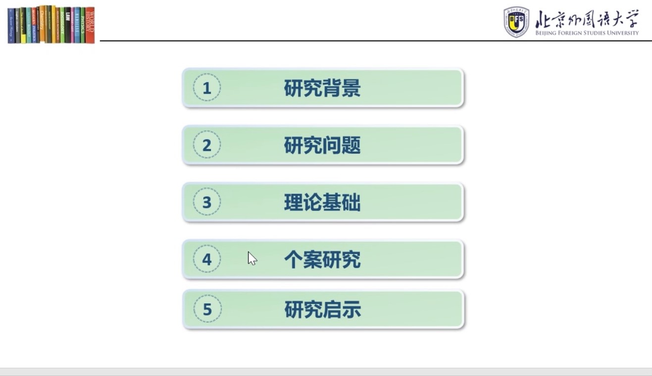 讲座总共分为五个部分展开,分别是:研究背景、研究问题、理论基础、个案研究和研究启示。