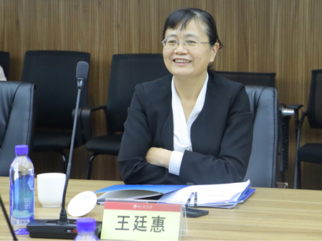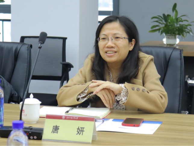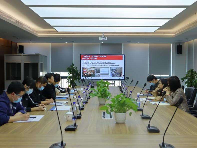 王廷惠代表知识城校区对唐妍一行莅临指导表示热烈的欢迎,对区委宣传部的关怀厚爱及支持帮助表示感谢。王廷惠围绕党建引领、人才培养、科学研究、对外交流等方面对知识城校区进行详细而全面的介绍。她表示,黄埔研究院深入融入大湾区发展,立足知识城战略地位,创新人才培养模式,推进科学研究及学术活动,发出了广外最强音。王廷惠提出三点期许,一是要加强指导,希望区委宣传部多来常来知识城校区;二是要加强联动,进一步推进校地之间信息互通共享,搭建协同联动机制;三是要加强共建,合作共建实习实践基地。