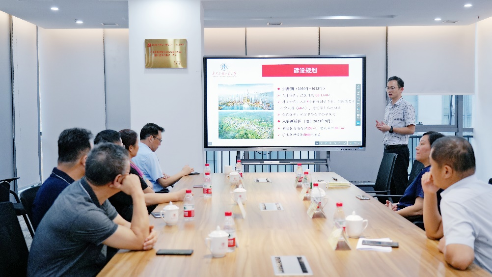 随后,周鹏向日语亚非学院一行具体介绍了知识城校区和黄埔研究院的相关情况,并介绍了新校区规划与建设的进展情况。