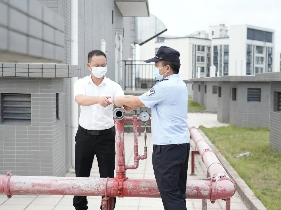本次检查重点是学生宿舍的消防安全、用电安全和疫情防控工作的展开情况。检查组一行首先进入宿舍楼内公共区域,对物业防疫台账、晚归登记制度进行了检查,并着重检查了应急通道、紧急出口、楼过道、消防设施、防火屏蔽门等重要场所和设施。