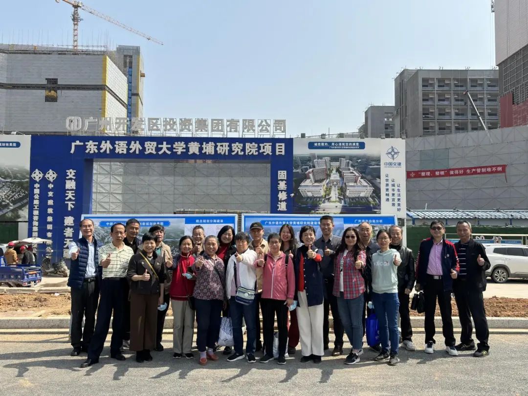 汤程荣带领离退休人员工作部的老党员们先后前往知识城新校区建设工地现场、中新广州知识城发展规划馆以及知识城校区进德楼参观调研,一行深入了解知识城新校区的整体规划、发展愿景和建设进度等,并就知识城新校区的建设、特色规划等方面进行交流。