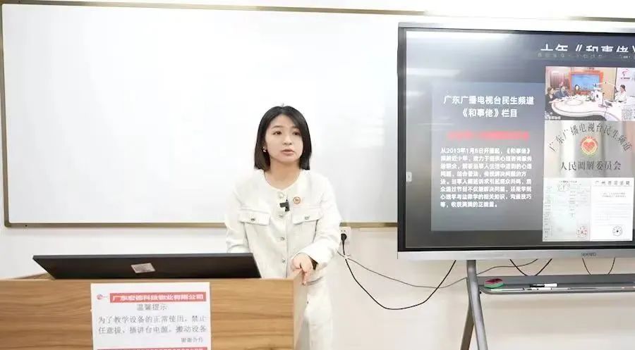12月8日下午,广东《和事佬》受邀来到广东外语外贸大学知识城校区和广外法学院的学生们开展了一场特殊的调解。活动报道于12月15日晚上20:30在广东广播电视台民生频道《和事佬》节目播出。
