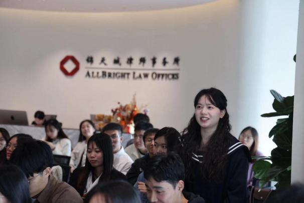 首先,黄桂洪律师带领同学们参观锦天城律所并向大家详细介绍了律所的发展历程、发展规模、律所文化、管理模式以及人才的选拔机制等。