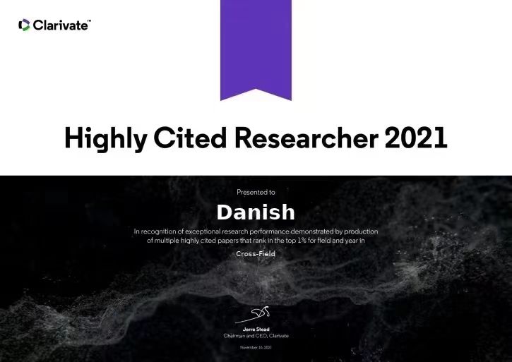 在“传道、授业、解惑”的同时,丹尼斯发表了多项围绕“一带一路”倡议的论文以及多篇高质量的SSCI文章,2021年,Danish入选全球性信息分析公司爱思唯尔(Elsevier)的“中国高被引学者(Highly Cited Chinese Researchers)”榜单。
