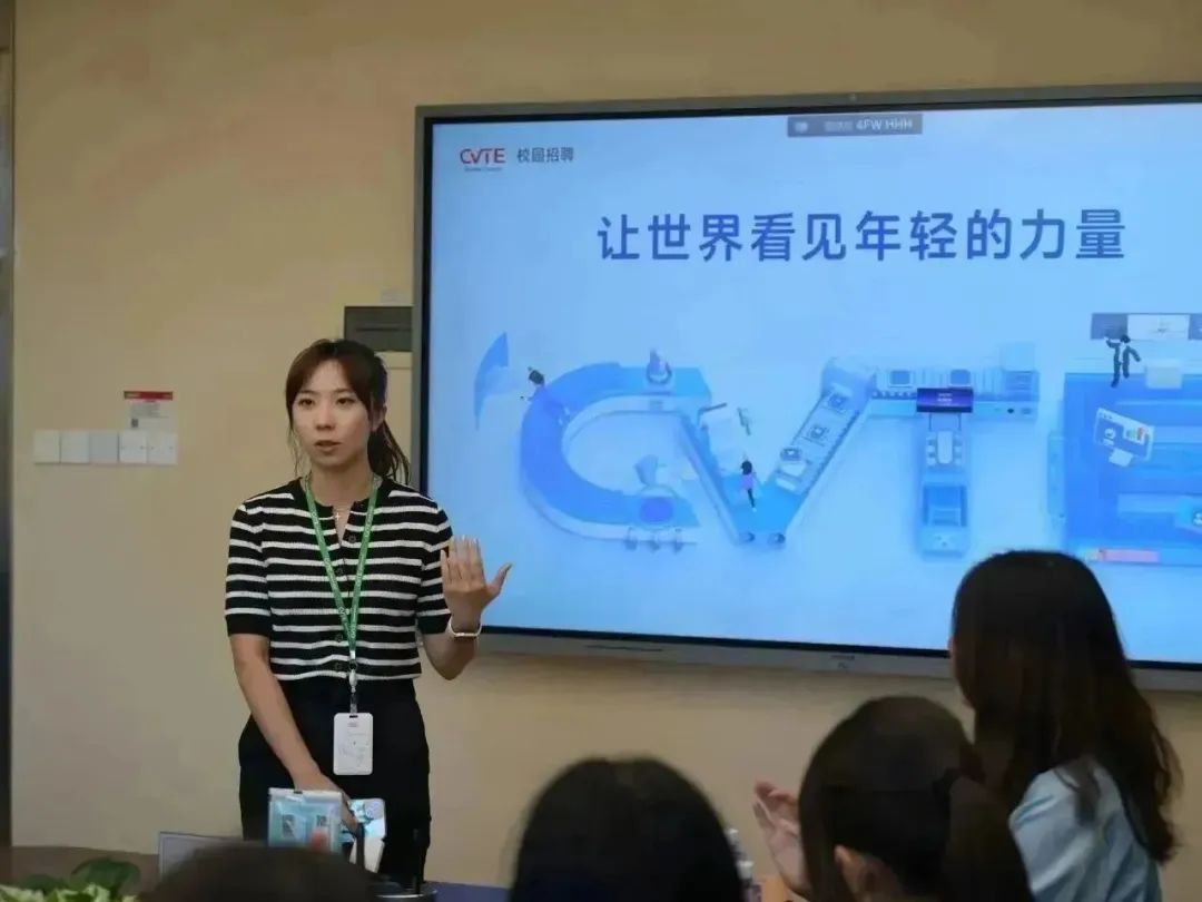 随后,广州视源电子科技股份有限公司海外营销、2023届毕业校友李柔向同学们分享了自己的秋招经历,并详细讲述了自己选择视源股份的原因。广州视源电子科技股份有限公司校园招聘负责人万春凤则从校园招聘角度向同学们进一步介绍了视源股份的具体情况与目前的秋招情况。