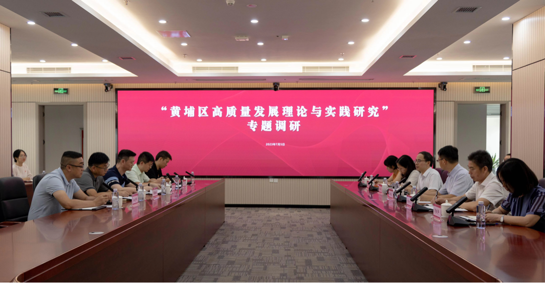 7月5日下午,黄埔区委常委、宣传部部长梅声洪专题调研黄埔区高质量发展理论与实践研究,实地走访广外黄埔研究院,参观进德楼并听取研究院发展情况汇报。