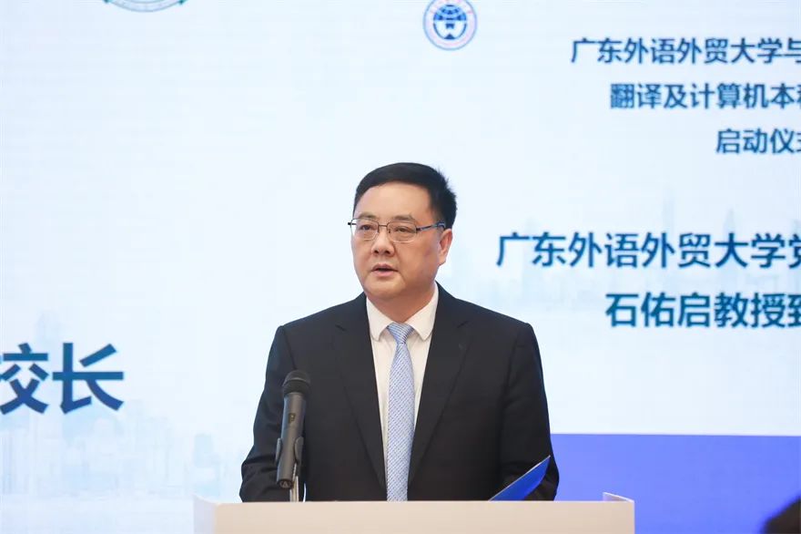 石佑启在致辞中表示,广外始终坚持以培养全球化高素质公民为使命,着力推进专业教学与外语教学的深度融合。期望项目充分发挥广外国际化人才培养经验以及在翻译学领域的强劲实力,融合澳理大在人工智能、语音识别技术与应用等方面的优质资源,共同为粤港澳大湾区及“一带一路”建设培养高端人才。