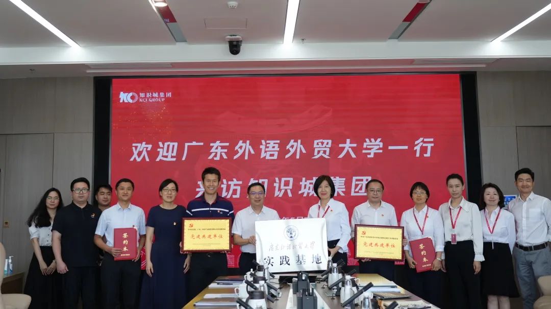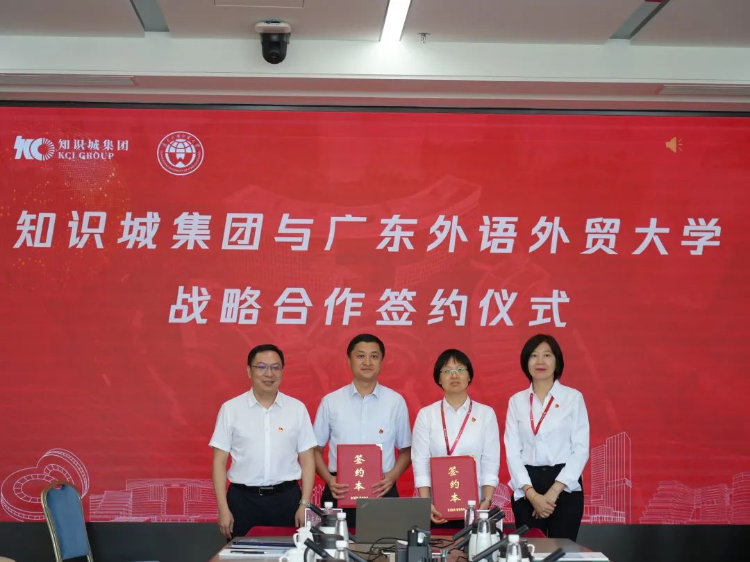 6月7日,广东外语外贸大学黄埔研究院与知识诚(广州)投资集团有限公司在知识大厦举行战略合作协议签约仪式,并开展校企合作、党建共建交流。我校党委常委、副校长刘海春,知识城(广州)投资集团有限公司党委副书记彭月梅,知识城校区管委会(筹)办公室副主任汤程荣,知识城校区管委会(筹)办公室副主任、黄埔研究院副院长王淑君,黄埔研究生院副院长张秀三,集团党群工作部总经理武燕,集团综合管理部总经理郝亚京,集团招商引资部总经理、知科公司董事长段晓讷等出席仪式。