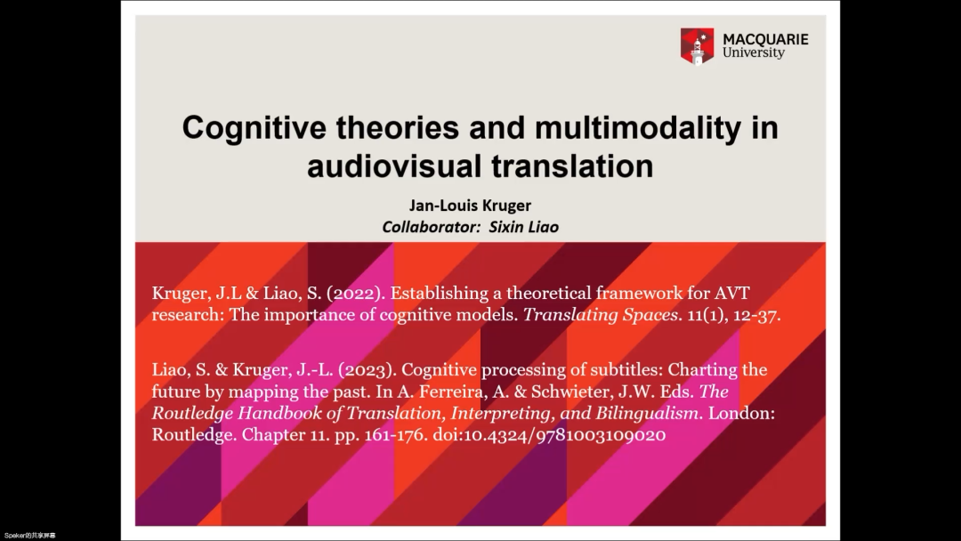 在整场讲座中,Kruger教授介绍了许多视听翻译的认知模型,对心理学和神经科学的相关学科也做了引申探讨。为相关领域的研究者提供了深入理解视听翻译过程和相关认知机制的机会,帮助大家提高研究深度和广度,并为提升视听翻译的质量和效率提供了指导和启示。