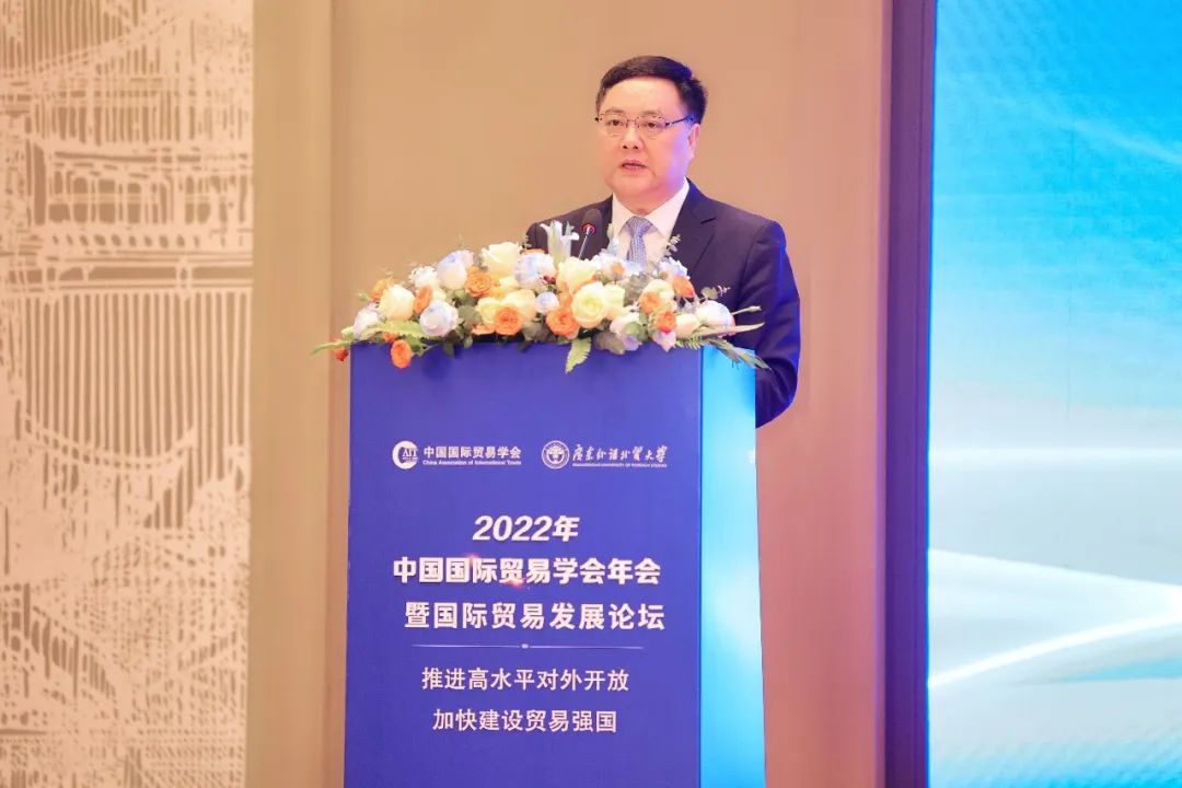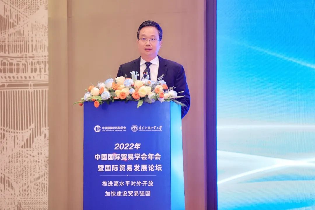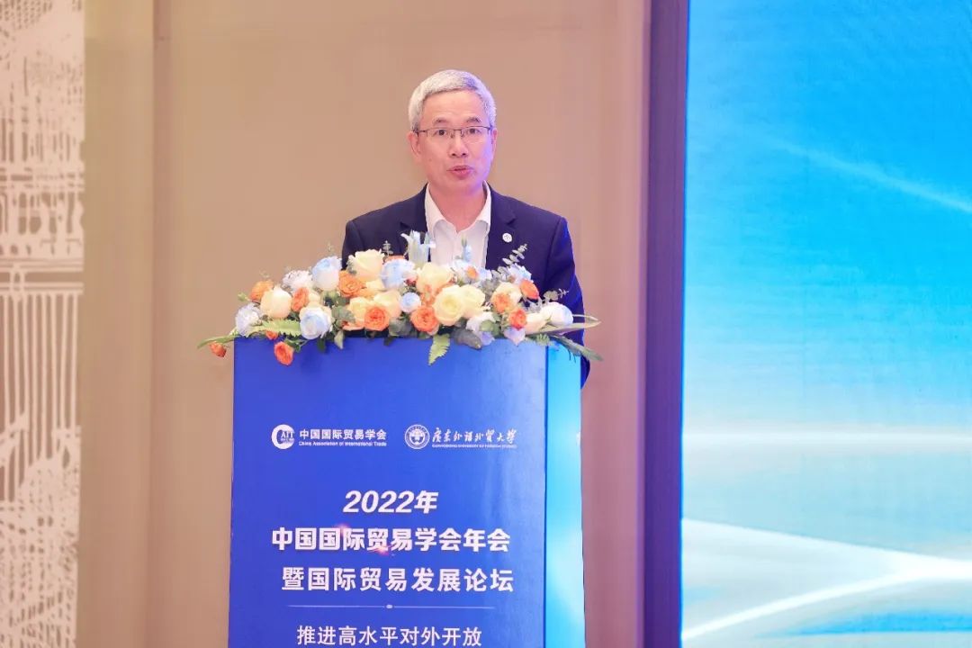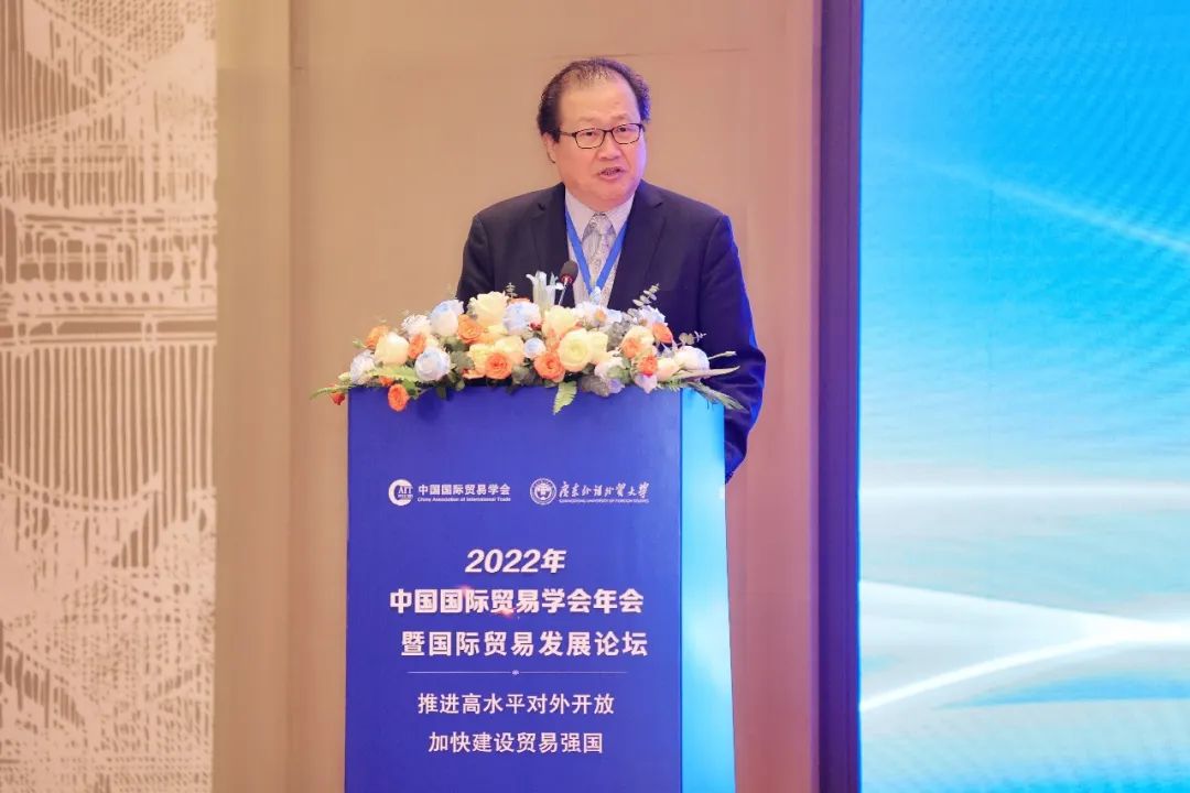 4月8日,“2022年中国国际贸易学会年会暨国际贸易发展论坛—推进高水平对外开放,加快建设贸易强国”在广州隆重举行。