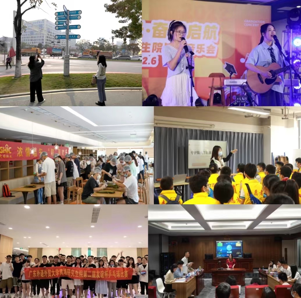 3月,举办“弘扬新时代雷锋精神 助力法治中国建设”学雷锋普法教育活动、“学习雷锋好榜样 译言译行显担当”告示牌英文翻译纠正志愿活动。5月,举办“劳动育人 青春筑梦”示范寝室评比活动、“浓情端午 粽享欢乐”迎端午包粽子活动、黄埔研究院首届辩论赛。6月,举办第二届“友谊杯”乒乓球比赛、“靠埔拾光·奋勇启航”2022届毕业音乐会、首届“知识城杯”校园文化创作大赛。10月,联合学生就业指导中心组织法学、翻译研究生专场秋季校园招聘会,以线上线下双平台相结合的方式展开,为黄埔研究院2023届毕业生提供600家企业3000余个招聘岗位。11月,为彰显广外黄埔研究院整体形象和理念内涵,举办黄埔研究院“梦起知识城 院徽由心绘”院徽设计大赛。