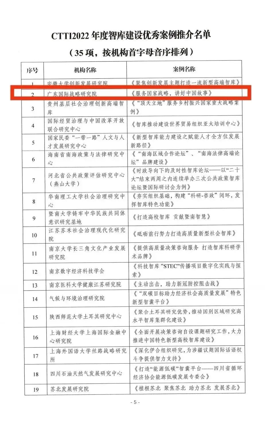 广东国际战略研究院案例和成果分别入选CTTI2022年度智库建设优秀案例和智库优秀成果一等奖