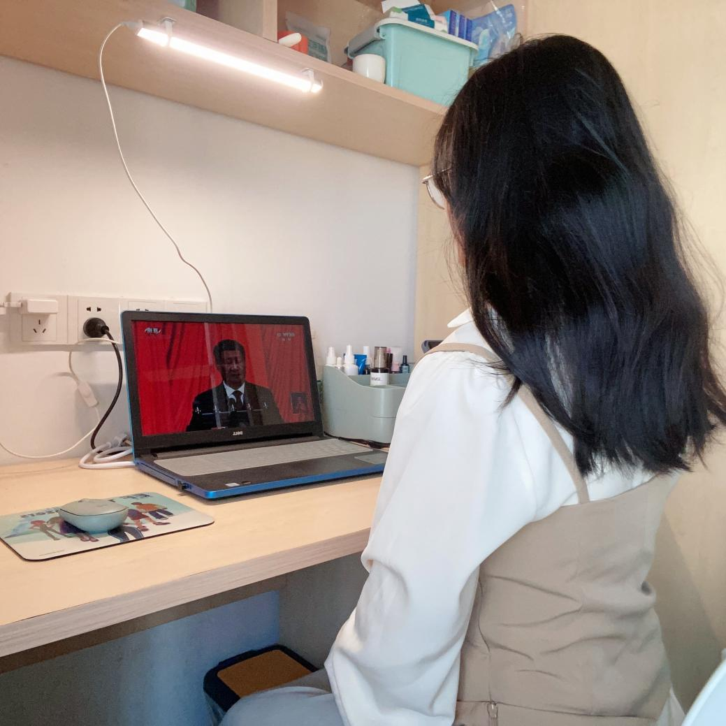 学生党员在宿舍自行收看