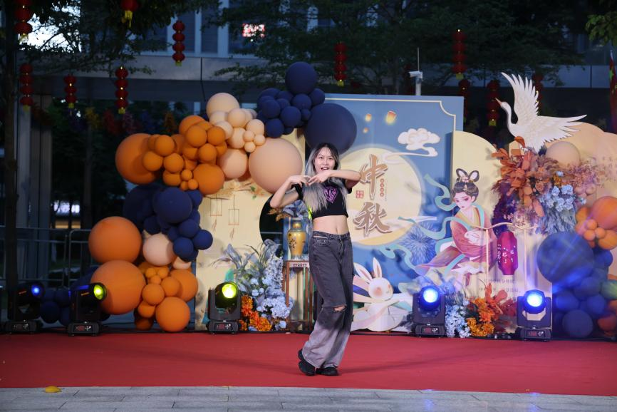 游园会现场特设了舞台区域,舞台上,同学们尽显青春的活力与风采,歌曲优美动听,与现场灯光相结合,感染了现场观众;也有同学跳起动感的舞蹈,点燃全场气氛。小小的舞台展现广外黄埔研究院学子的蓬勃与朝气,也用特别的方式献上了中秋祝福。