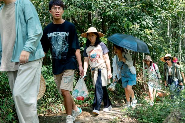 24日上午,同学们来到溪头村开启了一场长达5km的野外徒步。茂密的树荫是天然的遮阳伞,一行人穿梭于山野的小路中,就像是走在夏日的天然氧吧里。同学们一路说说笑笑,穿越郁郁葱葱的竹林,来到响水潭前聆听大自然的声音,光着脚丫穿过清凉的小溪流。一路上溪水潺潺哗哗作响,不时有清风拂面,送来一丝清凉。随后,同学们一同前往果园采摘番石榴,在欢声笑语中品尝劳动后番石榴的清甜。
