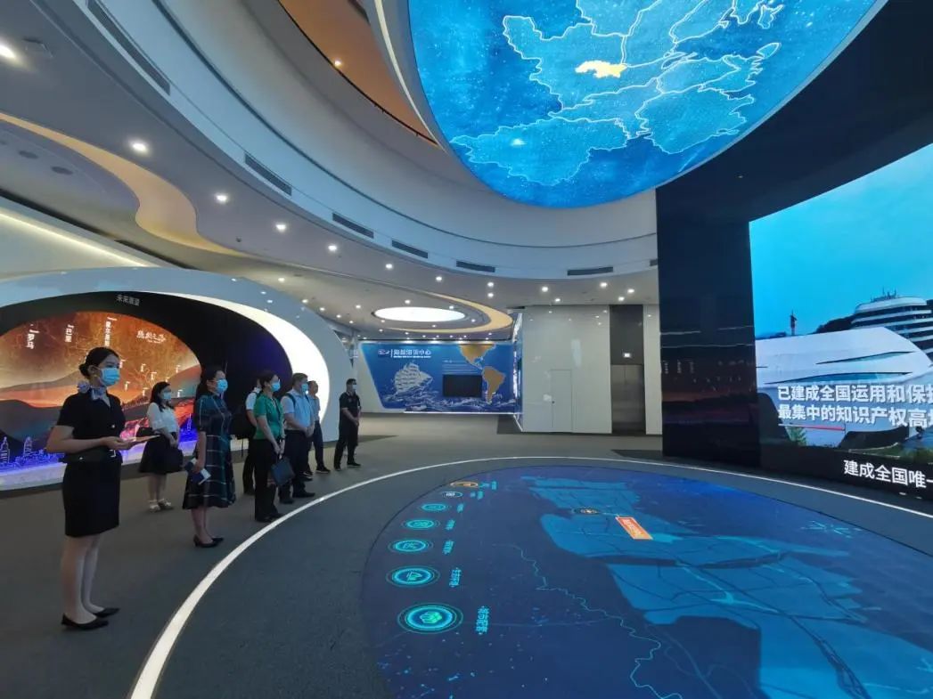 双方一行还到海丝知识中心展厅走访调研,观看了广州中新知识城及黄埔区宣传片,深入了解了中新知识城的发展规划和未来构想。