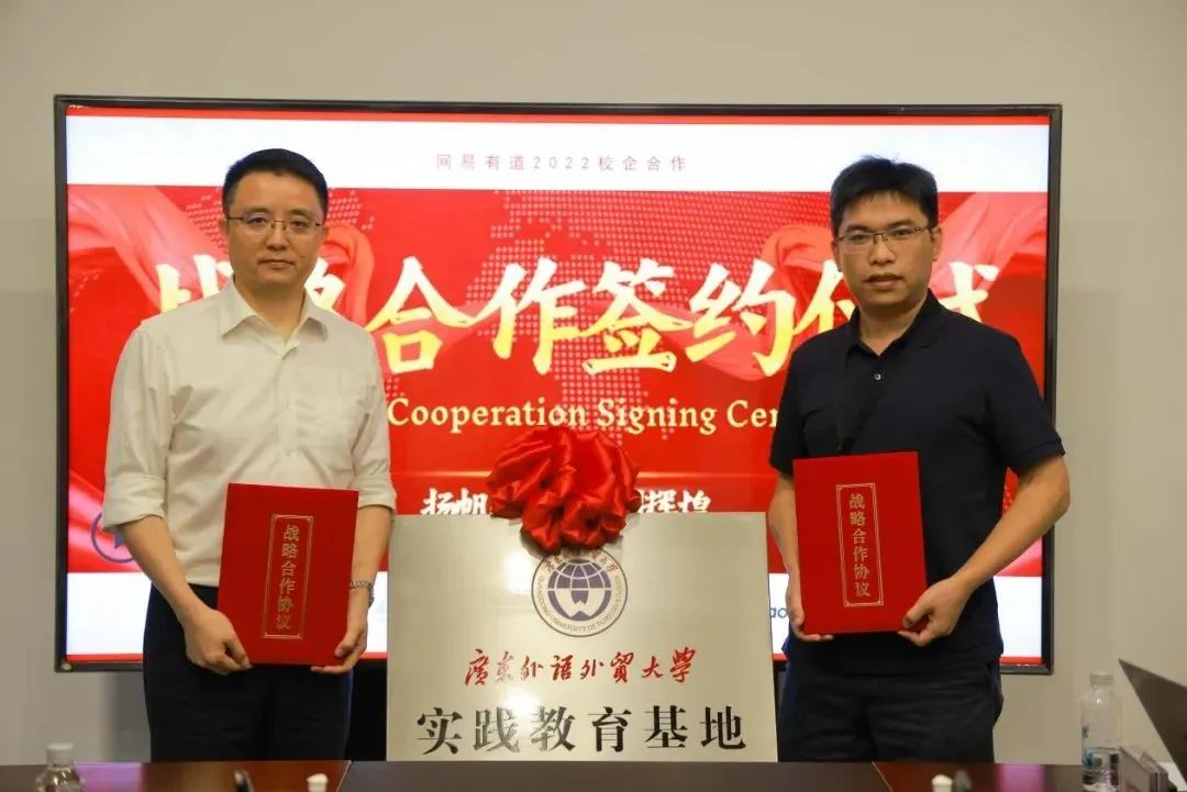 6月17日,高翻学院与网易有道公司签约共建实践教育基地仪式在网易大厦举行。学院院长蓝红军表示,与网易有道公司合作签约,是双方互利共赢的举措,期待可以发挥双方资源优势,开展学生实习实践和行业导师等多方面合作,促进企业发展,帮助学生成长成才。网易有道词典产品部副总经理詹晓文表示,对与高翻学院的合作充满信心,搭建平台,互通有无,找到双方的契合点,优势互补,为学生提供更多优质的实习与工作岗位。