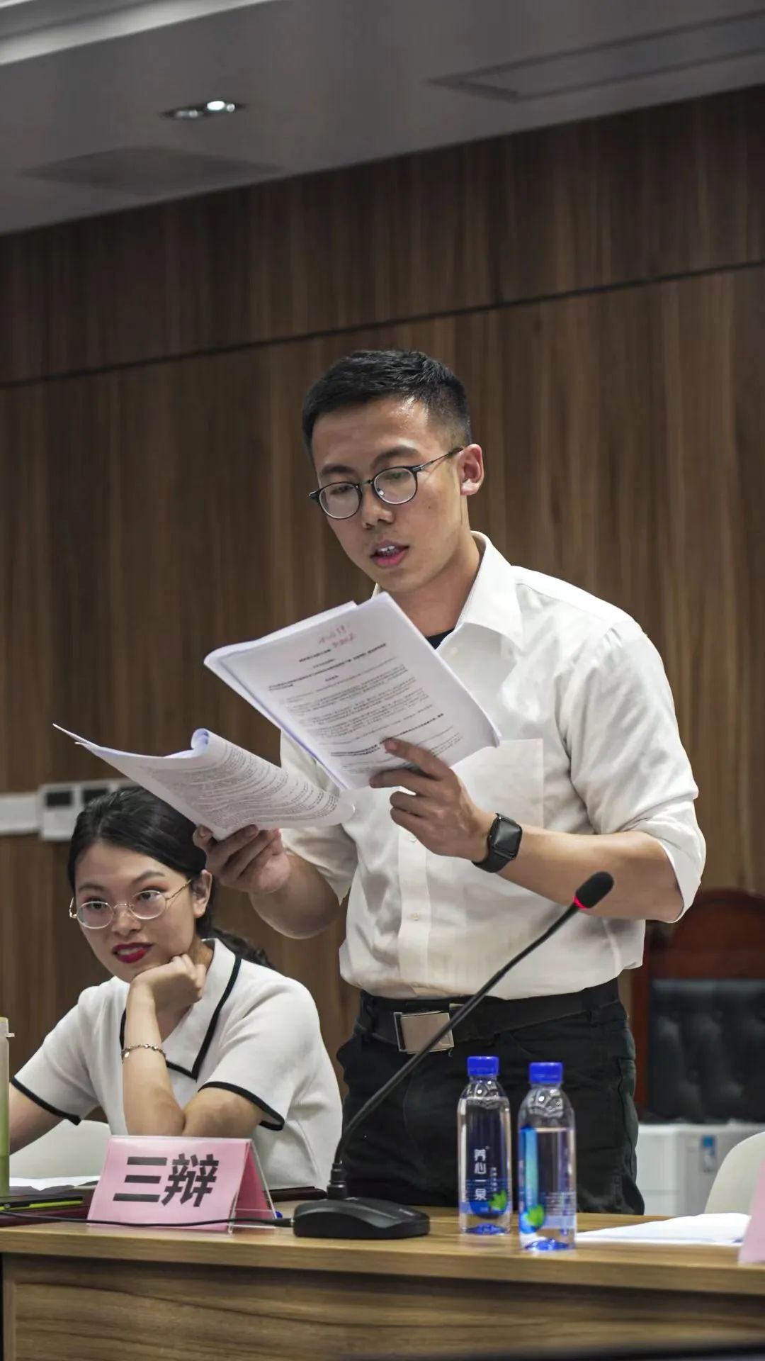 为淬炼广外法律人的思维和口才,培养堪当大任的新时代法治人才,黄埔研究院首届研究生辩论赛历经一个多月迎来了收官战。5月26日晚,在知识城校区进德楼407模拟法庭顺利举行决赛,经过激烈角逐,最终由法学院2021级民商法学陈艳媚、2020级涉外法治(非法学)叶慧敏、2020级国际法学赖思行、2021级涉外法治(非法学)班刘文康组成的“万里阳光号队”夺得本次比赛的冠军,由2020级法律硕士(非法学)班方奕、胡淑月、莫佩瑜和2020级涉外法治(非法学)班林沛阳组成的“树林莫方队”获得亚军,赖思行同学获“最佳辩手”。法学院章小杉老师和王辉皇、许伟彬等同学担任本次比赛评委,辅导员刘运宇出席本次比赛。