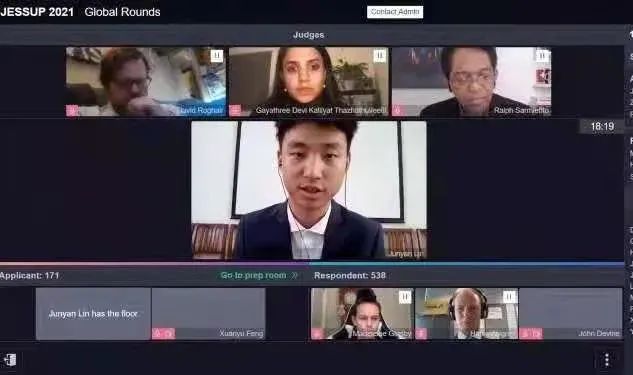广外代表队以缜密的逻辑和流利的英语口语对争议焦点进行分析,展现了丰富的专业知识储备、过硬的英语水平、团队合作的良好作风,获得了评委和参赛队伍的认可与赞赏,充分表现了我校在推进模拟法庭实践教学、深化国际法研究、培养拔尖人才方面的优秀成果。