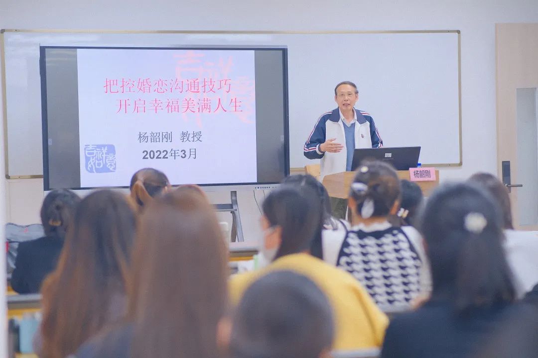 杨韶刚教授以古诗“人生四喜”即“久旱逢甘雨,他乡遇故知,洞房花烛夜,金榜题名时”引出此次讲座的主题。他指出,个人的婚恋问题不仅关系到个体自身终生的幸福,也关系到家庭这个最小社会细胞的发展,甚至间接地关系到社会的稳定与未来。