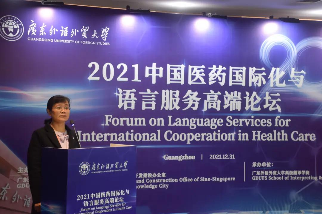 12月31日,第三届中国医药国际化与语言服务高端论坛在广东外语外贸大学知识城校区举办,采用线上线下相结合的方式。来自学界、教育界、产业界医药卫生领域的专家、学者和有识之士汇聚云端,共同探讨中国医药国际化与语言服务及人才培养的新机遇、新挑战和新对策。本次论坛由广东外语外贸大学黄埔研究院和中新广州知识城开发建设办公室主办,广外高级翻译学院承办。