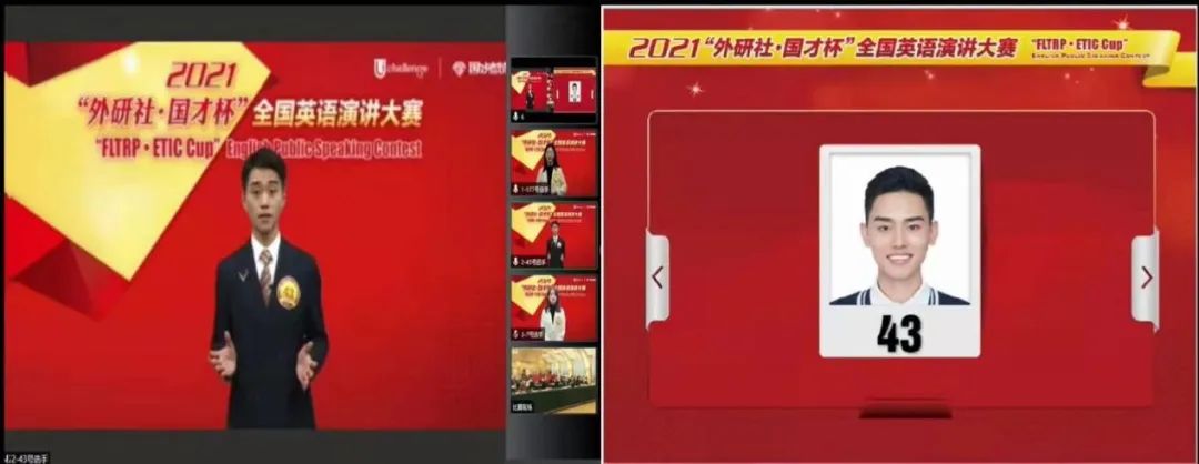 今年该赛事的全国总决赛分四个阶段,均于线上进行,翻译学院郭智威同学此前在广东赛区决赛问鼎冠军(特等奖),代表广外参加本次全国决赛。决赛第一阶段以“红星照耀中国(Red Star Over China)”为主题进行定题演讲和现场问答为赛制,郭智威同学以沉稳优异的表现从182名全国选手中脱颖而出顺利进入第二阶段。进入到第二阶段难度升级的即兴演讲,面对更具知识性与思辨性的赛题,郭智威同学尽管也有一些紧张情绪,但通过不断的自我调整和鼓励,仍从88名选手中再次突出重围成功晋级全国24强,进入第三阶段。