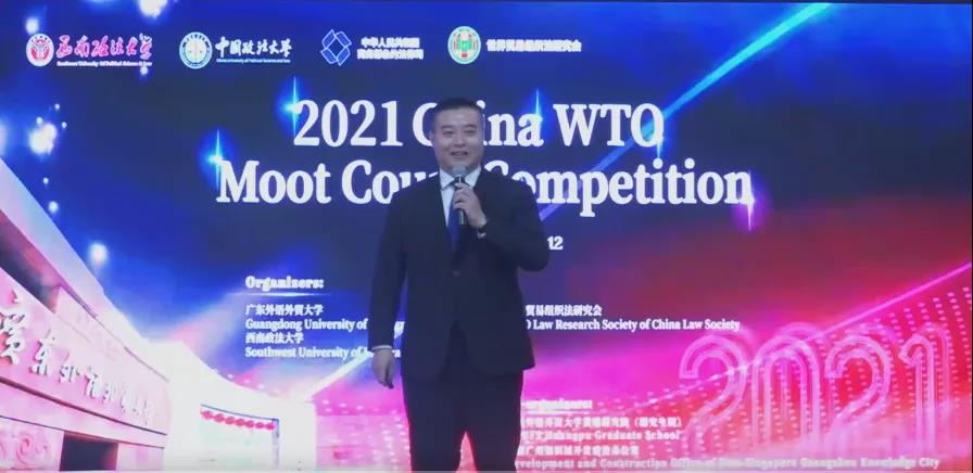 石佑启强调,2021年是中国共产党成立100周年,也是中国加入世界贸易组织20周年,举办第十届“中国WTO模拟法庭竞赛”意义尤为重大。他指出,广东外语外贸大学是一所国际化特色鲜明的广东省高水平大学重点建设高校,广外法学学科最早可追溯到1996年成立的国际法系,经过多年建设与发展,已形成“法学+外语”和“外语+法学”两种模式,基本建成本-硕-博贯通、高校-社会协同的立体化涉外法治人才培养体系。他表示,当今世界正面临百年未有之大变局,以国际法和WTO规则为基础的多边主义既面临艰巨挑战,也蕴藏着重要机遇。期待各位专家评委和参赛队伍借助竞赛平台,共同探讨WTO规则运用及WTO改革问题,为推动多边贸易体制的发展贡献更多智慧和力量。