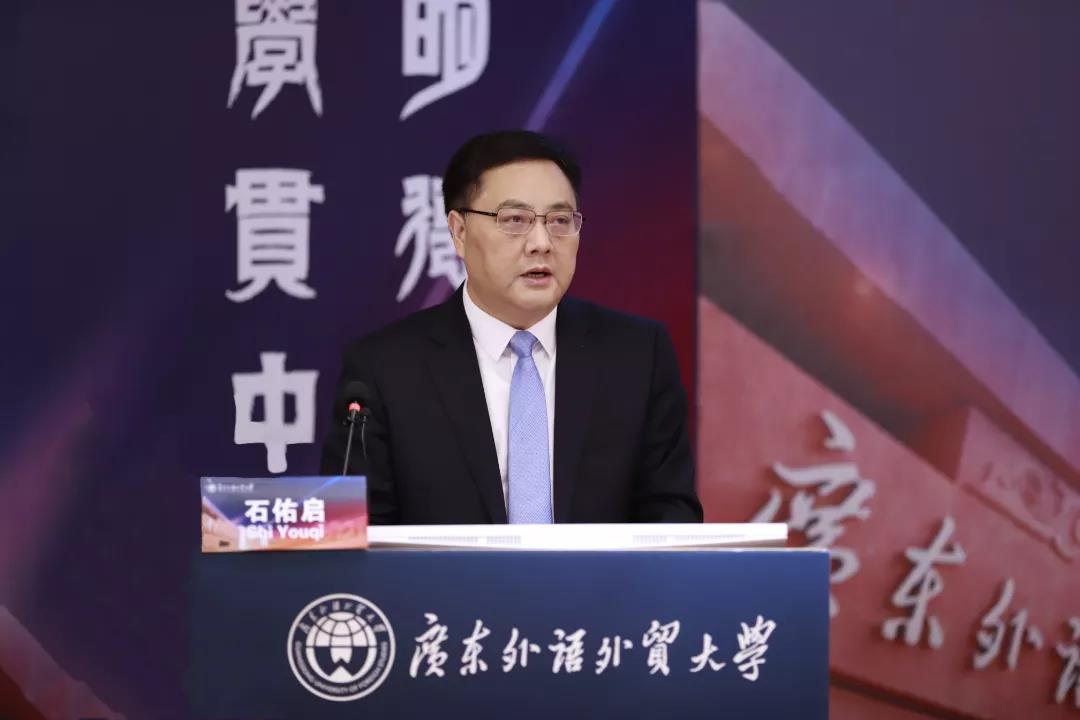 中国法学会党组成员、副会长王其江,中国法学会世界贸易组织法研究会常务副会长杨国华,西南政法大学副校长唐力,中新广州知识城开发建设办公室副主任徐晖,西南政法大学国际法学院院长张晓君,中国政法大学国际法学院院长孔庆江等领导和专家学者通过线上线下相结合的方式出席了开幕式。广东外语外贸大学校长石佑启在开幕式上致辞,副校长王廷惠主持开幕式。