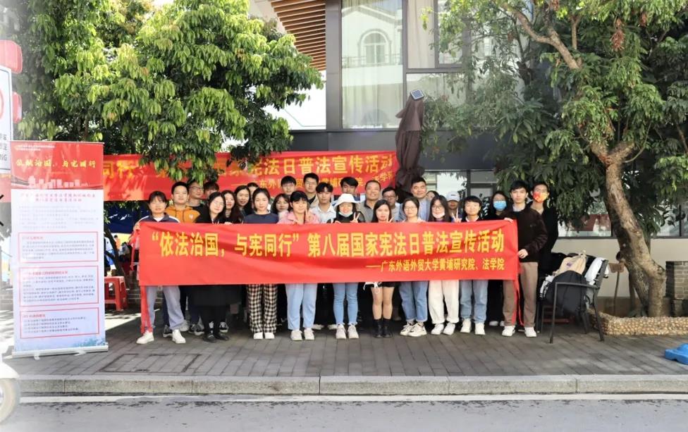 12月4日,由广东外语外贸大学黄埔研究院主办,法学院承办,科学城(广州)投资集团有限公司协办的以“依法治国,与宪同行”为主题的第八届宪法日普法活动在迳下村顺利开展。在刘军副书记、刘运宇老师的带领下,法学院知识城校区研究生普法志愿者兴致高昂地奔赴迳下村,向当地居民进行有关宪法、民法典和消费者权益保护法等与人民群众息息相关法律进行普法宣传和提供免费普法咨询。