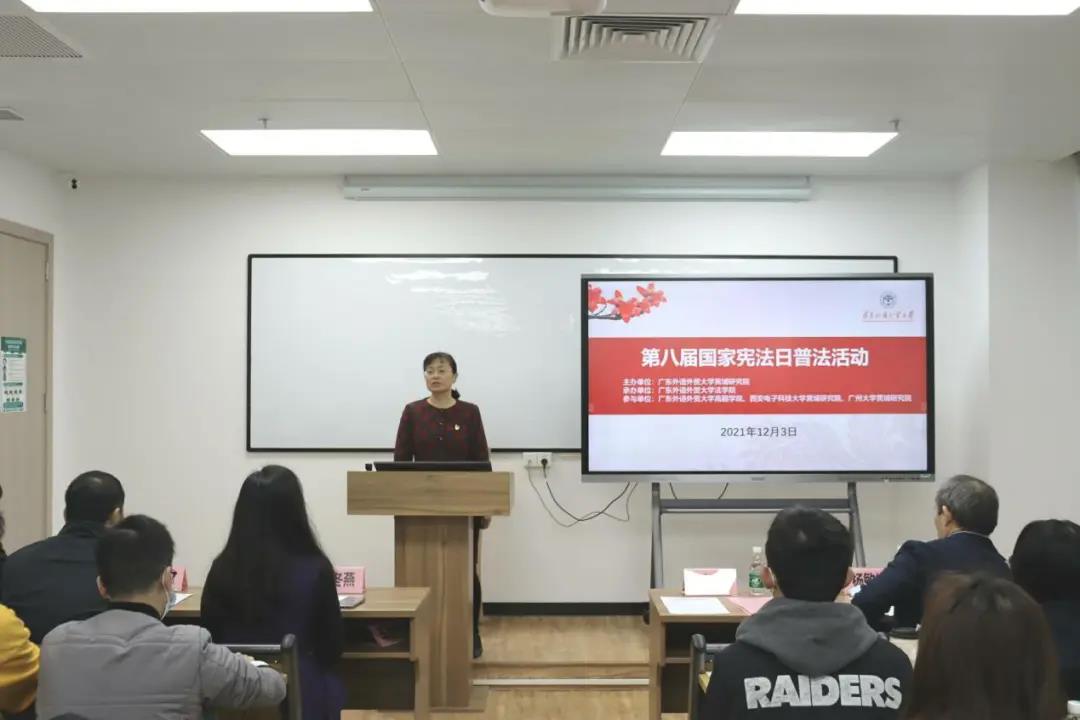 12月3日,广东外语外贸大学知识城校区开展“宪法晨读”与普法讲座活动。广东外语外贸大学副校长王廷惠、法学院党委书记杨敏生、知识城校区管委会主任苏冬燕、法学院党委副书记刘军、法学院谢宇博士,广东外语外贸大学黄埔研究院、西安电子科技大学广州研究院、广州大学黄埔研究院师生代表出席本次活动。活动由杨敏生主持。