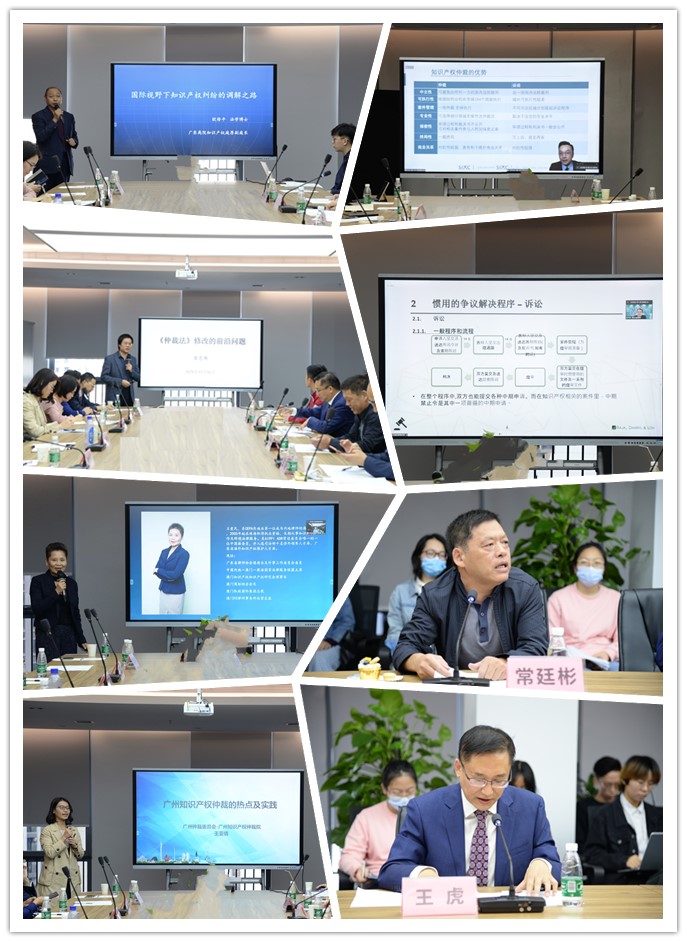 11月16日下午,在中新广州知识城建设办公室和广东外语外贸大学黄埔研究院指导下,广州开发区知识城国际知识产权促进会联合广东外语外贸大学法学院、华南国际知识产权研究院共同举办的一带一路国际知识产权仲裁与调解发展研讨会在广外黄埔研究院成功举办,本次研讨会是第六届21世纪海上丝绸之路国际智库论坛(2021)的其中一个平行论坛。中新广州知识城开发建设办公室科技与知识产权处处长徐博、广东外语外贸大学副校长王廷惠、广东省高级人民法院知识产权庭原副庭长、博士欧修平、广东外语外贸大学法学院、华南国际知识产权研究院常务副院长常廷彬、广州开发区知识产权协会秘书长赖洪川、广州开发区知识城国际知识产权促进会执行会长曾志洪、广东省谐合知识产权调解中心主任王虎以及50余名企业、科研院校、律师事务所及知识产权服务机构代表参加会议。