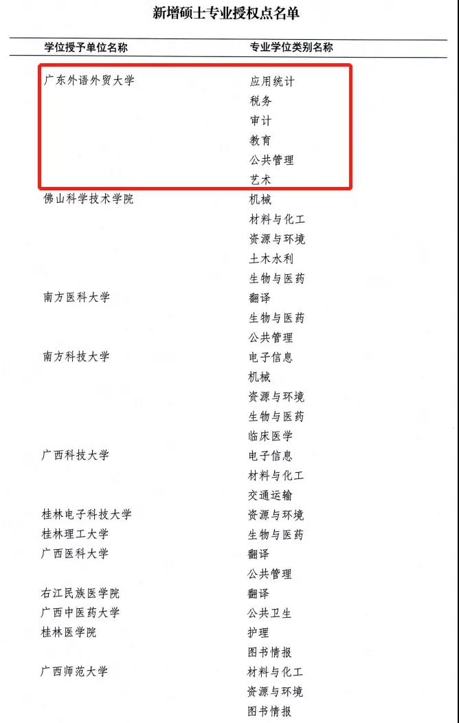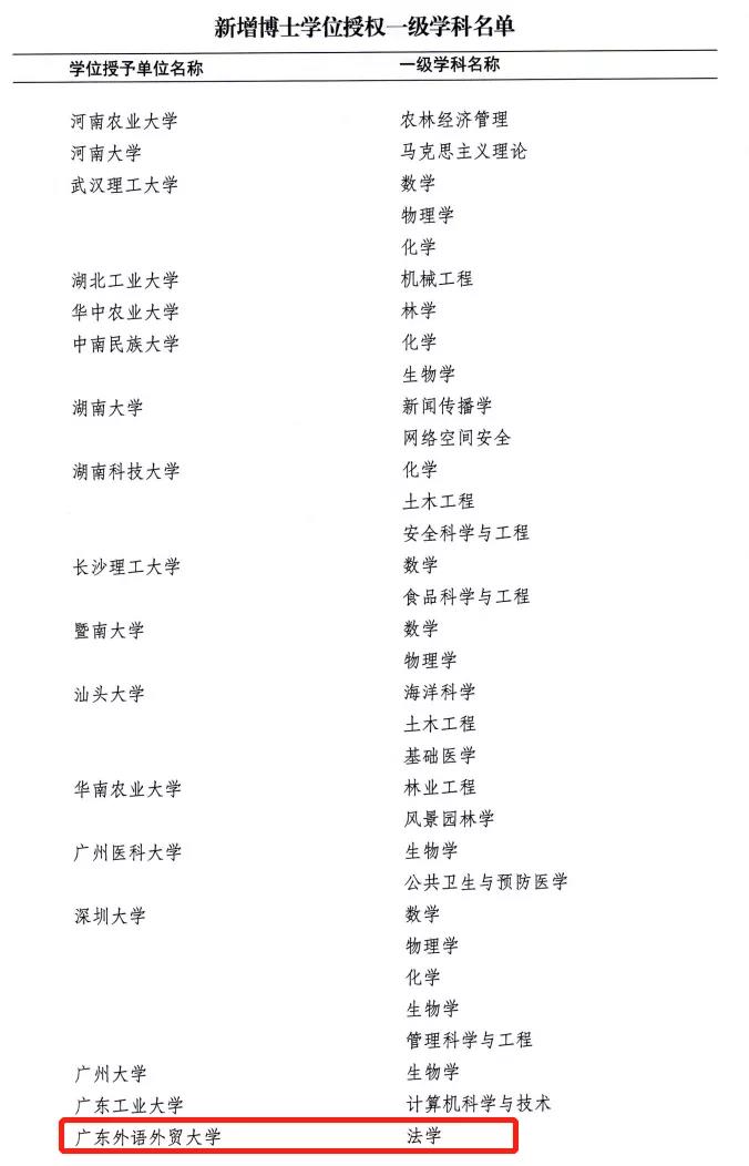 法学一级学科博士点的新突破、硕士学位授权点的大幅增加,拓展了我校学位点覆盖的学科门类,对改善学科结构、凝练办学特色、增强办学活力、形成新的学科优势具有重大作用。学校将以此为契机,矢志追求卓越,锐意改革创新,大力推进学校研究生教育高质量发展,为国家和广东省经济社会发展提供更加坚强有力的人才支撑。