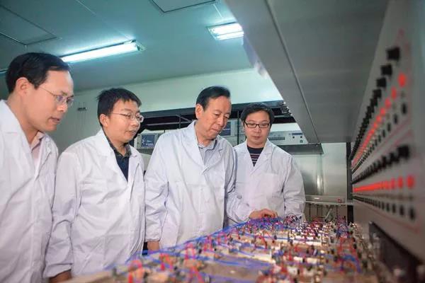 郝跃院士(右二)带领西电团队教师在进行 GaN 器件可靠性测试