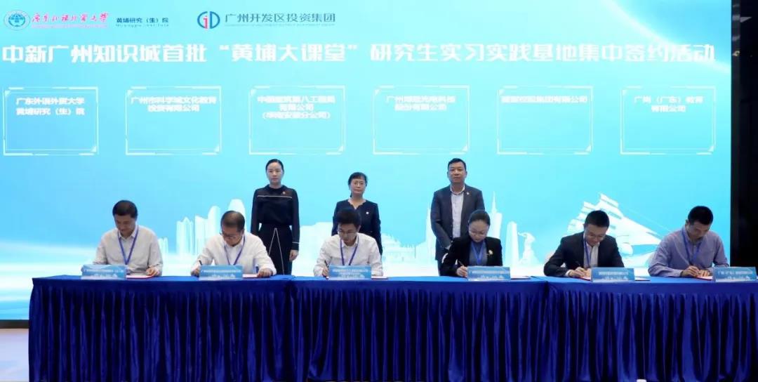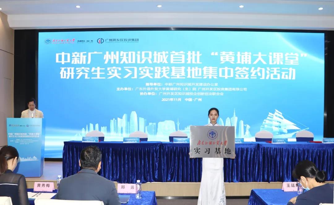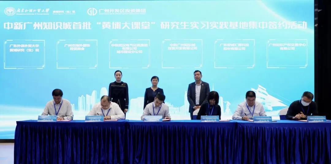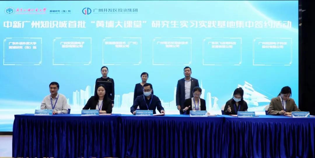 为推动广东外语外贸大学黄埔研究(生)院“产教融合、协同育人”,做好产学研精准对接工作,11月2日上午,中新广州知识城首批“黄埔大课堂”研究生实习实践基地集中签约活动于海丝知识中心举行。本次活动由中新广州知识城开发建设办公室指导,广东外语外贸大学黄埔研究(生)院、广州开发区投资集团有限公司主办,广州开发区知识城校企创新创业联合会协办。