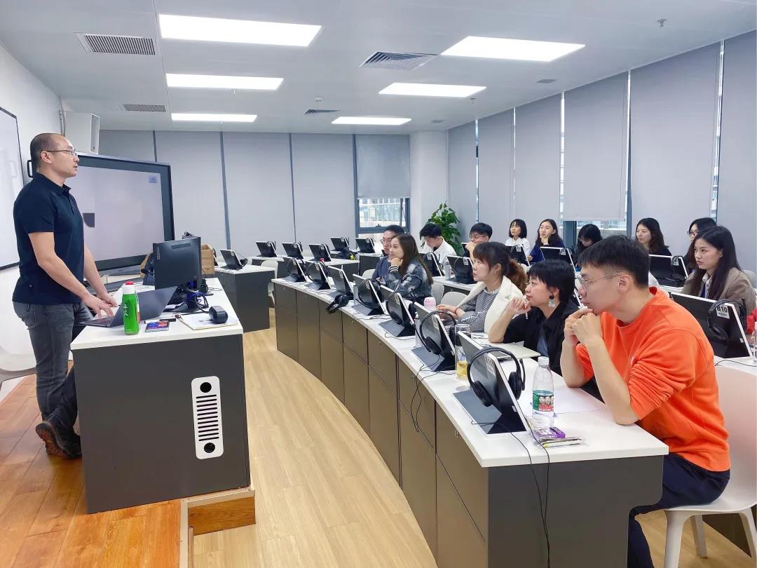 10月21日,湾区核心行业工作坊——科技第二课在线下开展。华为最高级别专家、部门唯一口译七级专家王凯老师抵达知识城,从华为业务生态、组织架构、 个人口译从业经历三个维度,向2020级证书班同学展示了大厂专业译员的真实工作状态,并在亲切回答大家问题后,带领同学们实战练习。