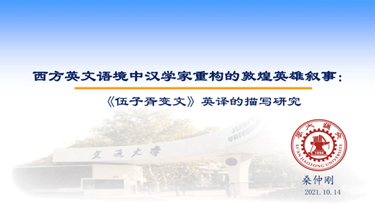 10月14日下午,由广东外语外贸大学黄埔研究院主办、高级翻译学院承办的黄埔大讲堂第17讲、岭南译学前沿讲座第223讲在腾讯会议室举行。西安交通大学外国语学院桑仲刚教授应邀进行了主题为《西方英文语境中汉学家重构的敦煌英雄叙事》的学术演讲。本次讲座由广东外语外贸大学高级翻译学院戴光荣教授主持,并在Bilibili平台同步直播,为高级翻译学院师生及广大翻译爱好者提供了学习与交流的平台。