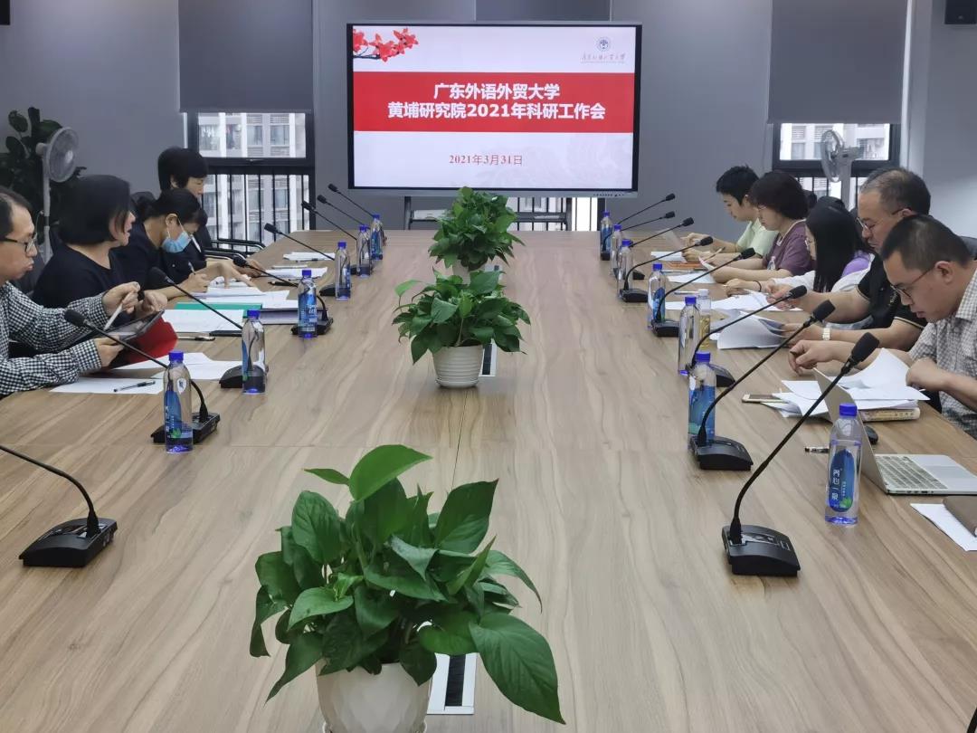 李青院长简要介绍了黄埔研究院2021年度科研工作计划,对相关科研平台协同创新、课题招标、实验室建设、高端论坛、黄埔大讲堂、社会服务等进行了重点讲解。王荣珍副院长详细分享了即将启动的课题招标及黄埔大讲堂建设事宜。会上,各入驻科研机构负责人、入驻学院分管科研工作副院长就关注的相关科研工作进行了充分交流,并就打造广外品牌、人才培养模式创新、课题招标、科研合作交流、博士后改革、科研服务等问题提出了相关建议。
