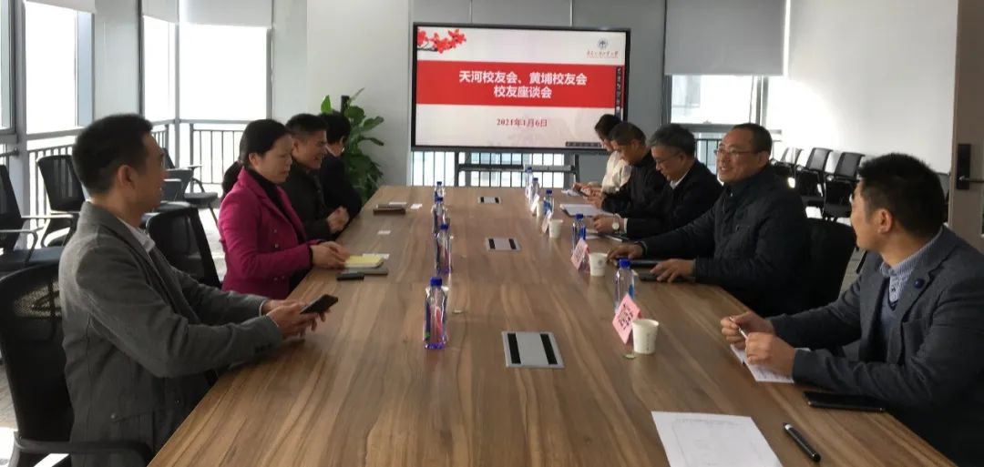 2021年1月6日上午,天河校友会、黄埔校友会校友座谈会在知识城校区黄埔研究院进德楼八楼第二会议室举行。天河校友会副会长唐玉涛、赵震锋,秘书长黄崇本,黄埔校友会秘书长钟伟祥,高级翻译学院党委书记李和民,黄埔研究院副院长余泽浩,黄埔研究生院副院长张秀三等参加本次座谈会。座谈会由余泽浩主持。
