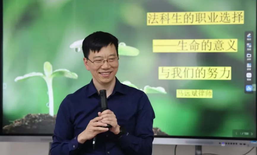马远斌律师以“法科生的职业选择——生命的意义与我们的努力”为主题,结合自己深耕法律领域的经验,从自身的职业发展经历切入,向同学们展示了法律的不同职业和不同发展阶段。同时他阐述了法科生应如何做好职业选择和职业生涯规划以及在职称上应当具备的能力。